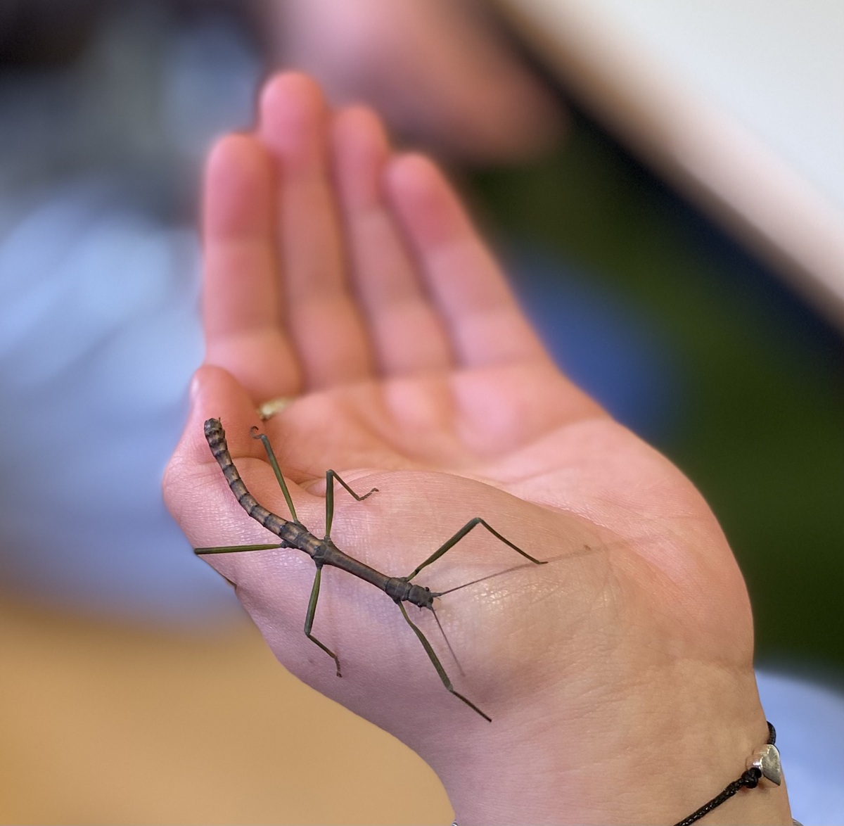 Besonderes Highlight: Gespenstschrecken zum Anfassen für die Teilnehmenden! So konnten sie die Tiere ganz aus der Nähe beobachten und erleben, dass sie erstaunlich gut an ihre Umgebung angepasst sind.