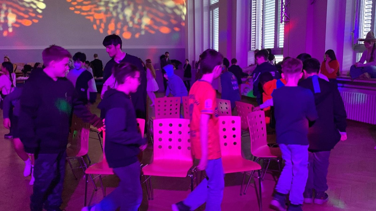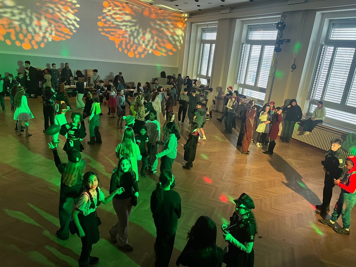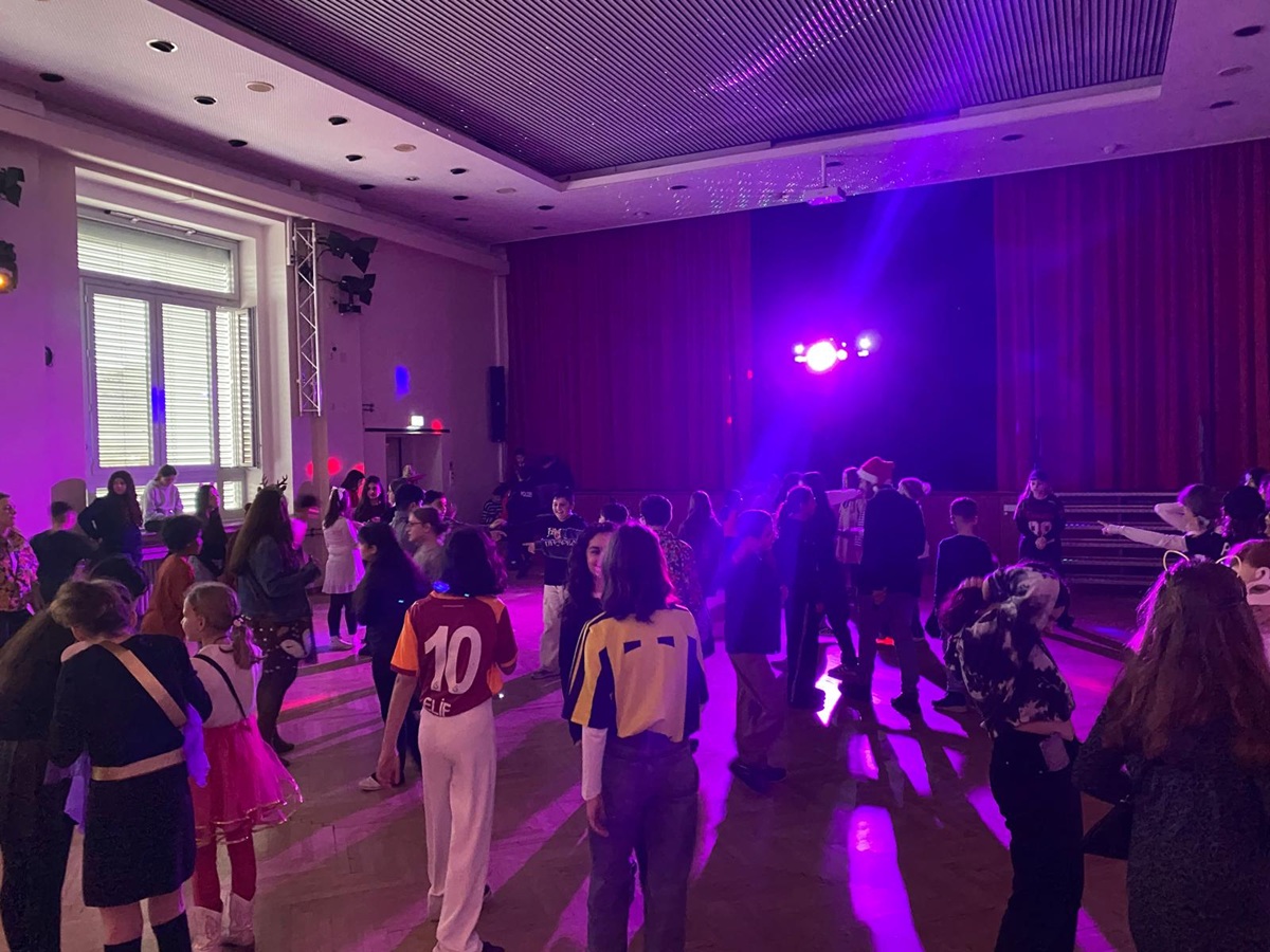 Am 12. Februar verwandelte sich unsere Aula für 90 Minuten in eine bunte Partyzone. Die SV hatte die Klassen 5 und 6 eingeladen zu einer Karnevalsparty, und die Stimmung war von Anfang an richtig gut. Es wurde gemeinsam getanzt, gesungen und gelacht, sodass die Zeit wie im Flug verging.