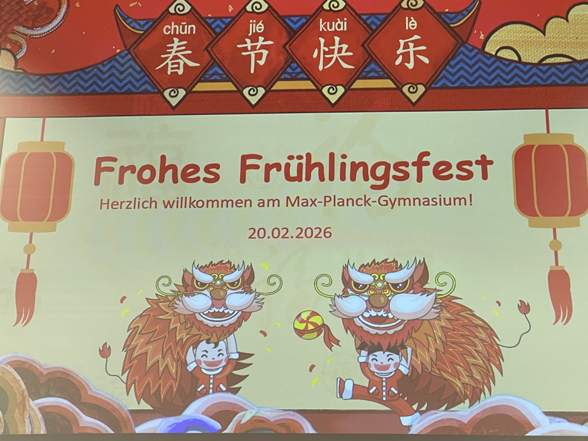 Am Freitag, dem 30.01., hat das Konfuzius-Institut Metropole Ruhr eine Gala anlässlich des chinesischen Frühlingsfestes veranstaltet. Die Schulleitung sowie die Chinesisch-Lehrkräfte und einige SchülerInnen des Max-Planck-Gymnasiums nahmen als Gäste an der Veranstaltung in der Mercatorhalle teil. Gemeinsam wurde der Beginn des Jahres des Feuerpferdes gefeiert. Das Feuerpferd ist ein Symbol für Dynamik, Freiheit und Aufbruch. Das Programm mit dem Namen „Luojia trifft Ruhr“ wurde von einem studentischen Kunstensemble aus Duisburgs Partnerstadt Wuhan gestaltet. Die StudentInnen unterhielten die Gäste eindrucksvoll mit Gesang, Tanz und Darbietungen an verschiedenen Instrumenten.